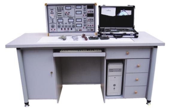 二、學(xué)生實(shí)驗桌:一桌二座,桌面中央設置九孔通用電路插板,元件盒在其上接插成實(shí)驗電路完成實(shí)驗。桌的左右各有一個(gè)柜, 柜中存放元器件, 貯存板及電腦, 中間上層放置鍵盤(pán), 下層抽屜存放工具, 萬(wàn)用表、導線(xiàn)等。桌面尺寸:160×70cm。