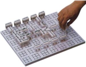 實(shí)驗桌一桌兩座,實(shí)驗桌中央配有通用九孔萬(wàn)能插件板(尺寸:35×90cm ),九孔萬(wàn)能插件板主體由ABS注塑而成,表面布有九孔成一組相互聯(lián)通的插孔,九孔萬(wàn)能插件板內部?jì)惹?span lang="EN-US">126組銅質(zhì)九孔一體成型嵌件(共有1134孔)。實(shí)驗中的弱電模塊必須以獨立封裝的透明元件盒為單一模塊,元件盒統一都能配合九孔萬(wàn)能插件板像搭積木一樣的形式自由搭建組合電路;元件盒盒體透明,內裝元件直觀(guān)性好,盒蓋印刷電路圖防刮耐磨,符號美觀(guān)清晰。元件盒盒體與盒蓋采用較科學(xué)的壓卡式結構,維修拆裝方便。每張臺桌配有一粒膠皮板,保護通用底板與桌面(如需在桌上放置電動(dòng)機、焊接等)。