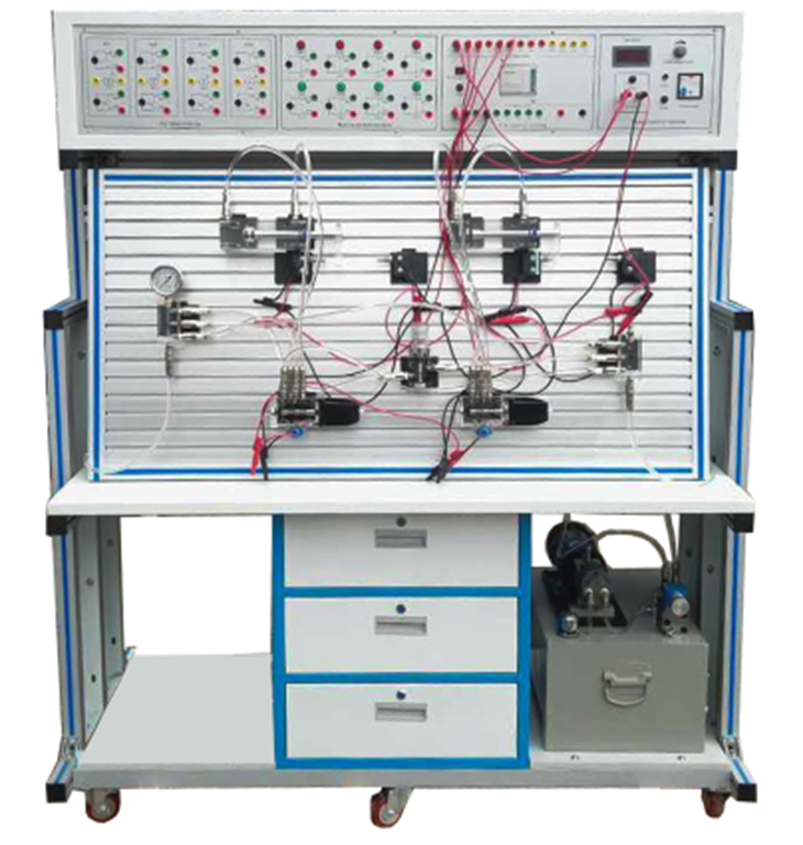 1、液壓PLC控制實(shí)驗臺主要由實(shí)訓桌、實(shí)訓臺、液壓元件和電器控制器件、可編程控制器(PLC)等組件組成。