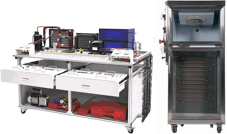 雙溫冷柜模塊系統采用模塊化設計,由網(wǎng)孔板、制冷系統、冷柜箱體、冷柜電氣實(shí)訓考核模塊、制冷專(zhuān)業(yè)工具及配件等組成。