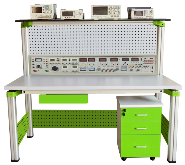 實(shí)訓機頭為鐵質(zhì)雙層亞光密紋噴塑結構,鋁質(zhì)面板,為實(shí)訓提供直流電源、函數信號發(fā)生器、測試儀表及實(shí)訓器件等。