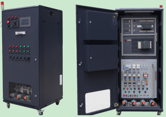 現代電氣控制系統安裝與調試實(shí)訓考核裝置。是由實(shí)訓柜體、門(mén)板電氣控制元件(組件)、儀表等,實(shí)訓考核單元掛板、網(wǎng)絡(luò )組態(tài)掛板、PLC控制型機床掛板、電機單元、運動(dòng)單元、溫度控制組件、網(wǎng)孔掛板等組成。其外觀(guān)如圖所示。