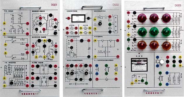 設有儀表量程擴展實(shí)驗電路、電路狀態(tài)軌跡的觀(guān)測實(shí)驗電路、最大功率傳輸條件測定實(shí)驗電路、RC雙T選頻網(wǎng)絡(luò )實(shí)驗電路、電壓源與電流源的等效變換實(shí)驗電路、RLC元件特性及交流電參數的測定實(shí)驗電路。掛箱面板正面印有原理圖及符號,反面焊有相應元器件,使用方便、直觀(guān)、可靠。