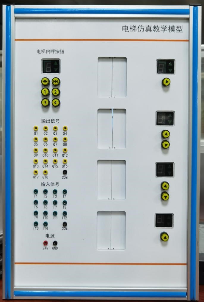 電梯仿真教學(xué)模型,電梯實(shí)訓系統由機械傳動(dòng)和電氣控制兩部分組成,機械部分控制門(mén)的開(kāi),閉和轎箱的上下移動(dòng);控制部分由PLC控制各項功能開(kāi)關(guān)和指示燈,以完成電梯的各項動(dòng)作。