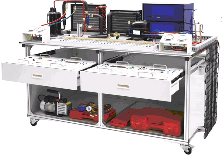 1.該裝置集制冷空調系統安裝、冰箱系統安裝、制冷系統電接線(xiàn)、壓力檢漏、抽真空、 充注制冷劑與運行調試于一體,包含了制冷系統維修的全部步驟,能滿(mǎn)足實(shí)訓教學(xué)、實(shí)際工程訓練及職業(yè)技能競賽的需要。