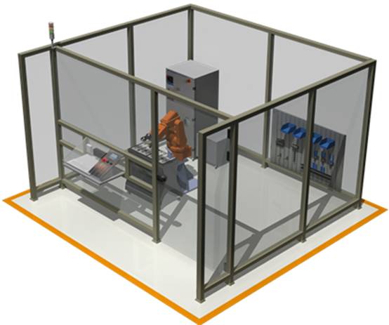 1、隔離護欄,總體高1200mm,框架采用2mm厚灰色鋁合金材料,其他全部安裝10mm厚透明鋼化玻璃;帶一個(gè)側開(kāi)門(mén),左右推拉式,占地2000~2300mm×2000~2300mm; 2、系統工作站安裝有3個(gè)急停按鈕,分別位于操作控制臺、模型安裝臺、隔離護欄上,以備緊急情況使用; 3、在隔離護欄、安全門(mén)、設備等顯眼位置粘貼多種安全標識,實(shí)時(shí)提醒設備的安全運行。 |