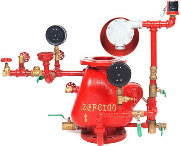 ZSFZ濕式報警閥是只允許水單方向流入噴水滅火系統,并在規定的壓力和流量下驅動(dòng)配套部件報警的一種單向閥。它與水流指示器、壓力開(kāi)關(guān)、灑水噴頭等組成的濕式自動(dòng)噴水滅火系統是一種應用極為廣泛的固定式滅火系統。該系統管網(wǎng)內常年充滿(mǎn)一定壓力的清水,長(cháng)期處于伺應工作狀態(tài),當保護區域內某處發(fā)生火災時(shí),區域內環(huán)境溫度升高,灑水噴頭的熱敏感元件(玻璃球)中的有機溶液發(fā)生熱膨脹而產(chǎn)生很大的內壓力,直到玻璃球外殼發(fā)生破碎,從而開(kāi)啟噴頭噴水,并且自動(dòng)啟動(dòng)整個(gè)系統,發(fā)出聲光報警信號,以達到火災報警及控制火災、撲滅火災之目的。