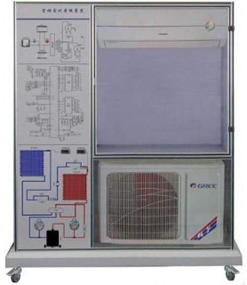 2.裝置直觀(guān)展示了變頻空調的系統結構和工作原理,便于教學(xué)演示講解及學(xué)生對課本知識的理解掌握。配置的交流電壓表、交流電流表、溫度表、真空壓力表以及相應的信號指示燈,使整個(gè)變頻空調系統的實(shí)時(shí)工作狀態(tài)一目了然;主面板中間印有電氣控制系統原理圖,并設有相應測試點(diǎn);屏背面可觀(guān)察到整個(gè)制冷系統結構原理以及主要部件的實(shí)際物體,相應部件均有名稱(chēng)標識;并設有視液鏡,可觀(guān)察制冷劑狀態(tài)