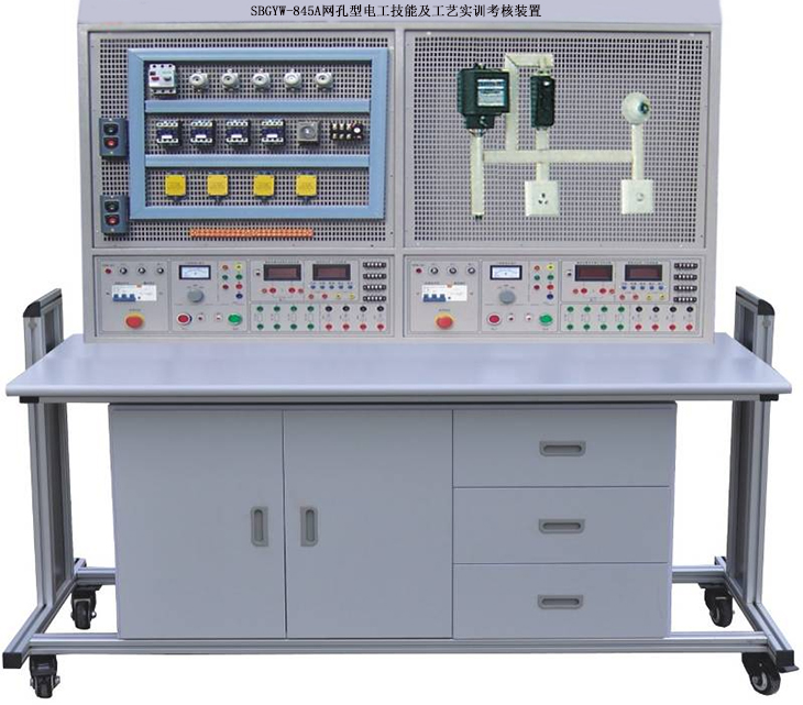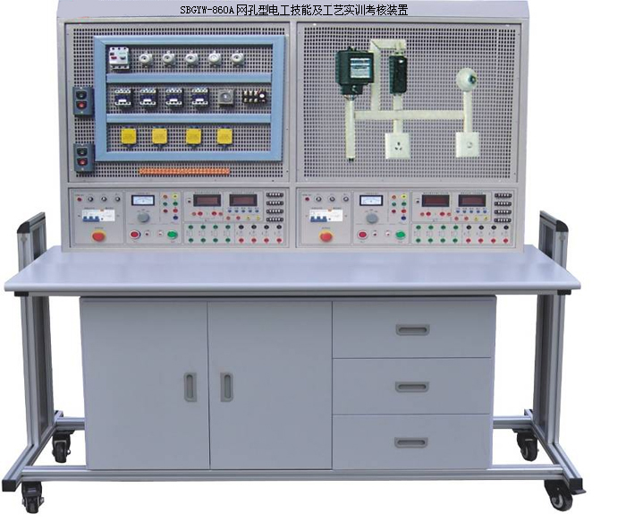 電工工藝(維修電工)試驗臺,可以提供電工基本技能訓練和相應的拓展訓練,可以開(kāi)展電工基本工具儀表的使用,三相異步電機控制電路接線(xiàn)和室內照明電路安裝接線(xiàn)等實(shí)訓項目。