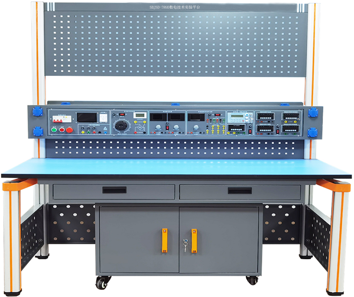 本實(shí)訓臺主要由實(shí)訓機頭、儀器架、電源控制箱、獨立實(shí)訓電路模塊、實(shí)訓桌(含磁吸式實(shí)訓基座)、儲存柜、學(xué)生凳等組成。