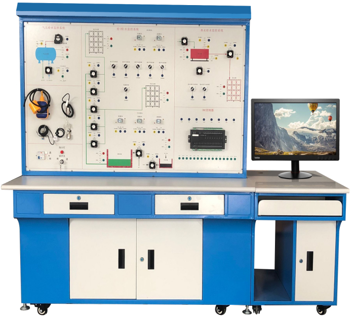 能進(jìn)行各種給排水系統控制操作演示、 DDC 控制器的操作與編程、給水控制、排水控制、氣壓給水控制、熱水供水控制、水位傳感器的安裝與連接,系統軟件的組態(tài)、配置與控制,線(xiàn)路的設計與連接、故障的設置、判斷及排除等實(shí)驗和實(shí)訓,并可與樓宇自控系列中的其它設備聯(lián)網(wǎng)進(jìn)行各種綜合實(shí)訓。