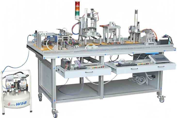 自動(dòng)生產(chǎn)線(xiàn)實(shí)訓考核裝置適用于《光電一體化》課程及《電氣自動(dòng)化》等實(shí)訓課程的教學(xué),以滿(mǎn)足本專(zhuān)業(yè)培養目標的要求,提高學(xué)生光機電氣一體化的安裝與調試能力。自動(dòng)生產(chǎn)線(xiàn)實(shí)訓考核裝置由由鋁合金導軌式實(shí)訓臺、典型的機電一體化設備的機械部件、PLC模塊、變頻器模塊、按鈕模塊、電源模塊、模擬生產(chǎn)設備實(shí)訓模塊、接線(xiàn)端子排和各種傳感器、計算機等組成。整體結構采用開(kāi)放式和拆裝式,實(shí)訓裝置用于機械部件組裝,可根據現有的機械部件組裝生產(chǎn)設備,也可添加機械部件組裝其他生產(chǎn)設備,使整個(gè)裝置能夠靈活的按教學(xué)或競賽要求組裝具有生產(chǎn)功能的機電一體化設備。模塊采用標準結構和抽屜式模塊放置架,互換性強;按具有生產(chǎn)性功能和整合學(xué)習功能的原則確定模塊內容,使教學(xué)或競賽時(shí)可方便的選擇需要的模塊。設備需完全符合電工電子全國職業(yè)技能大賽所要求,同時(shí)還要求具有可拓展功能,可以組成更加大型的生產(chǎn)模擬系統,以配合各個(gè)用戶(hù)學(xué)校不同層次,不同專(zhuān)業(yè)的教學(xué)及培訓要求。
