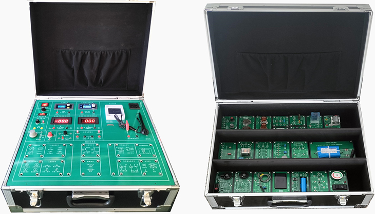 汽車(chē)電子電器實(shí)訓系統主要由汽車(chē)電子電器實(shí)訓箱及電子電器實(shí)訓模塊收納箱組成。電工電子實(shí)訓箱上設有數字電壓表、數字電流表、PWM信號發(fā)生器、220V電源插座;提供正12V、正5V直流電源,0~15V可調直流電源,15V交流電源,數字示波器,觸控筆等。
