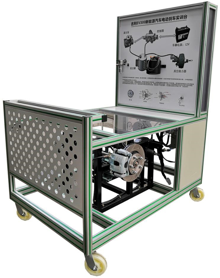 吉利EV450電動(dòng)車(chē)電動(dòng)真空泵(2件,1件解剖)、電動(dòng)真空泵控制單元、真空壓力傳感器、剎車(chē)真空助力器、剎車(chē)總泵與踏板、剎車(chē)真空罐(2件,1件解剖)、剎車(chē)油瓶、開(kāi)關(guān)電源12V30A、點(diǎn)火開(kāi)關(guān)、真空表、壓力表(0~100kg/psi)、左右前輪液壓剎車(chē)盤(pán)總成、左右半軸總成、電機與變頻器(220V4KW1400轉電機,220V5KW變頻器)、電機傳動(dòng)帶與輪盤(pán)一體化全鋁合金型材搭建的移動(dòng)臺架(1500×1000×1700mm ,帶自鎖腳輪裝置,帶安裝檢測端子的原理面板948×898mm)、故障模擬與排除裝置、設備操作說(shuō)明書(shū)。