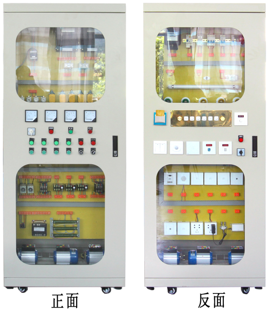 2、電氣柜體正面內安裝賓館及公寓內部單相電氣控制電路,主要包括賓館客房及公寓住宅全套單相電照明及電器插座模塊(含專(zhuān)用控制面板)同時(shí)還配備各種弱電信息模塊。學(xué)生通過(guò)各種不同的線(xiàn)路連接,既能進(jìn)行一些諸如請勿打擾電路安裝等小課題的實(shí)訓,也能進(jìn)行一些諸如客房全套電器安裝及故障設置和排除等綜合性課題的實(shí)訓。