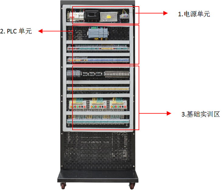 實(shí)訓單元組成:網(wǎng)孔板實(shí)訓區主要由電源單元、PLC單元、PLC學(xué)習箱單元、基礎實(shí)訓單元、小車(chē)運動(dòng)單元、變頻器單元等組成。