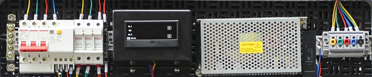 組成:三相四線(xiàn)漏電保護開(kāi)關(guān)、380V指示儀表、開(kāi)關(guān)電源、即插即用端子、雙層端子、保險絲端子,導軌;