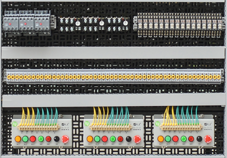 組成:繼電器、交流接觸器、熱繼電器、按鈕指示燈、導軌、線(xiàn)槽、雙層端子;