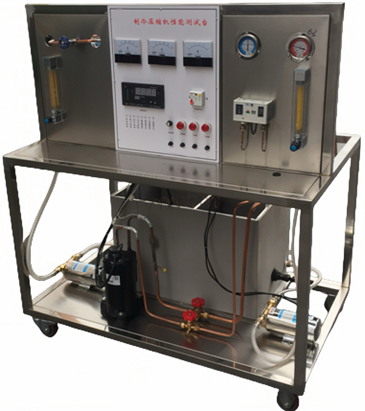 制冷壓縮機性能實(shí)驗臺"制冷壓縮機性能測試實(shí)訓設備"采用蒸汽壓縮式制冷循環(huán)系統,配備全封閉式制冷壓縮機、冷凝器、蒸發(fā)器等制冷系統真實(shí)部件,并設有智能溫度調節儀、流量計、壓力表、電壓表、電流表等測量?jì)x表。能開(kāi)設制冷壓縮機性能參數的測定實(shí)訓,還能進(jìn)行制冷循環(huán)基本原理的演示實(shí)訓。適用于職業(yè)院校制冷專(zhuān)業(yè)相關(guān)課程的教學(xué)實(shí)訓。