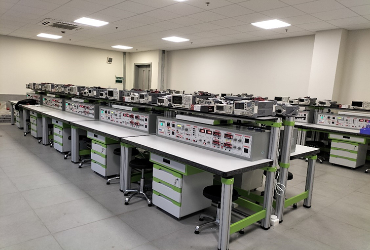 電子工藝實(shí)習室是供學(xué)生焊接練習、電子產(chǎn)品組裝調試操作的實(shí)驗室,學(xué)生進(jìn)行焊接操作。配備的儀器設備主要有直流穩壓電源、示波器、萬(wàn)用表、工具箱等。為了改善實(shí)習室的空氣環(huán)境衛生,還專(zhuān)門(mén)配備了抽風(fēng)系統。開(kāi)設的課程有《電子工藝實(shí)習》、《電工實(shí)習》,包括電路元件的選配、電子產(chǎn)品的安裝、焊接和性能測試等環(huán)節。電子工藝實(shí)驗實(shí)訓室設備主要面向汽車(chē)、機械、電信、電氣、計算機、經(jīng)濟、管理等學(xué)院的學(xué)生,培養學(xué)生的動(dòng)手實(shí)踐能力、分析問(wèn)題和解決問(wèn)題的能力以及創(chuàng )新精神。