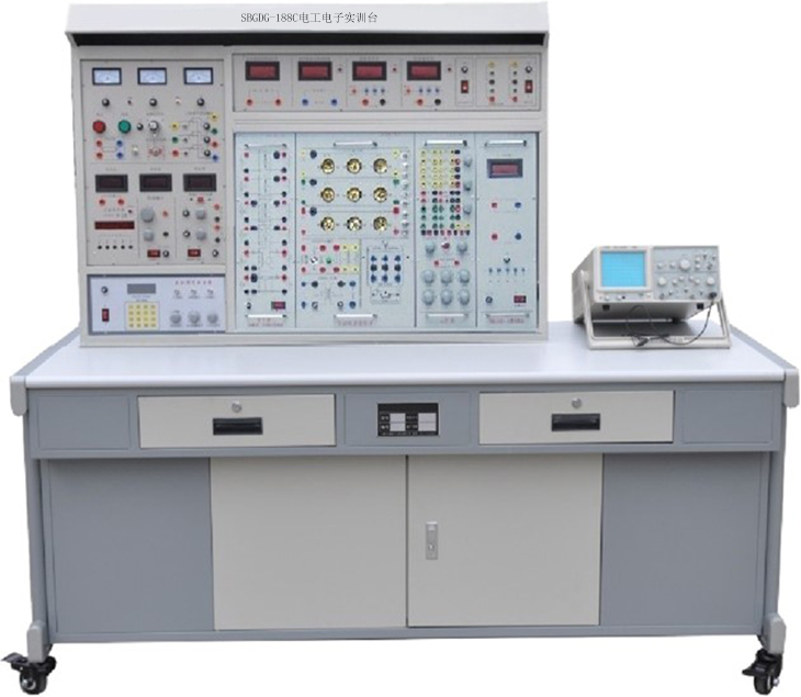 電子電工實(shí)訓裝置主要由電源儀器控制屏、實(shí)訓桌、實(shí)訓掛箱及三相鼠籠電機等組成。