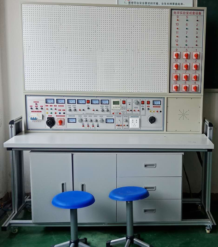 電工基礎實(shí)訓臺,電工基本實(shí)訓設備,電工電子技能實(shí)訓臺,電工實(shí)驗臺具有較完善的安全保護措施,較齊全的功能。實(shí)驗桌中央配有通用電路板,電路板注塑而成,表面布有九孔成一組相互聯(lián)通的插孔,元件盒在其上任意拼插成實(shí)驗電路,元件盒盒體透明,直觀(guān)性好,盒蓋印有永不褪色元件符號,線(xiàn)條清晰美觀(guān)。盒體與盒蓋采用較科學(xué)的壓卡式結構,維修拆裝方便。元器件放置在實(shí)驗桌下邊左右柜內,大大提高了管理水平,規劃化程度,大大減輕了教師實(shí)驗準備工作。